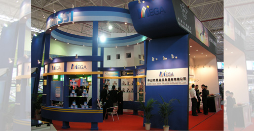 美嘉公司近百米平方的展區(qū),色彩艷麗,形象鮮明。