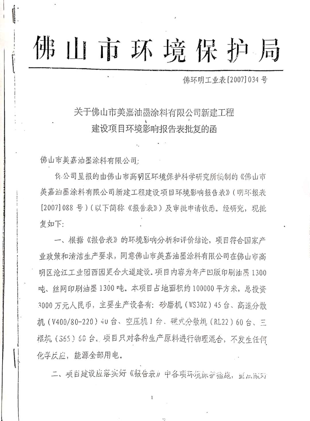 環(huán)保批復(fù)文件