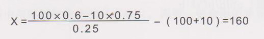 x=(60+7.5)/25x100-(10+100)=160